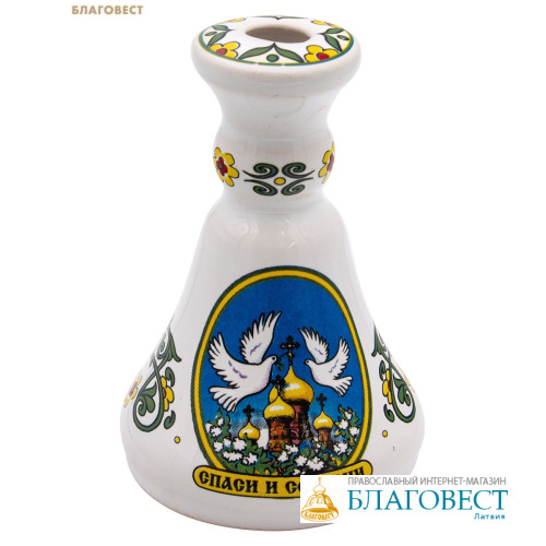 Подсвечник Спаси и сохрани, высота 6,5см, диаметр отверстия 8мм, керамика