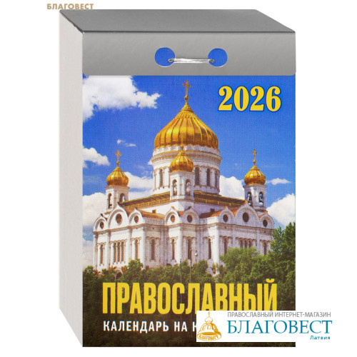 Отрывной настенный календарь на все 365 дней 2026 года с указанием церковных праздников, дат по старому стилю и дней памяти святых. На каждой странице календаря православный верующий найдёт сведения, постный это день или скоромный, а на обратной стороне листочка - поучения святых отцов, уроки веры, описание православных праздников, духовные наставления, разъяснение правил христианской жизни. Как и в любом отрывном календаре, указываются моменты восхода и захода Солнца и Луны, фазы Луны, долгота дня для Москвы.