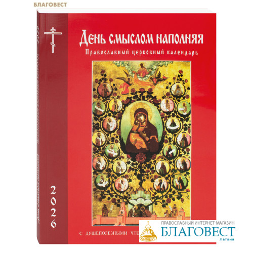 Православный церковный календарь «День смыслом наполняя» содержит на каждый день церковного года душеполезные чтения, в которых основы жизни по Евангелию раскрываются через воспоминание великих людей Родной земли и приобщение к духовному опыту святых. В календаре подробно повествуется о многих святых и церковно-исторических событиях, юбилеи которых будут отмечаться в 2026 году. Среди них – 700-летие преставления святителя Петра, митрополита Киевского, Московского и всея Руси, 600-летие преставления преподобного Никона, игумена Радонежского, ученика преподобного Сергия, 100-летие преставления святителя Московского Макария (Невского), а также 375-летие со дня рождения святителя Димитрия, митрополита Ростовского, 25-летие прославления праведного воина Феодора Ушакова. В 2026 году исполняется 80 лет со дня рождения Святейшего Патриарха Московского и всея Руси Кирилла.Календарь включает месяцеслов с богослужебными заметками, который также содержит указания на ежедневные чтения из Священного Писания, возглашаемые в храмах за богослужением. В справочный раздел календаря включен список церковных праздников и памятных дат, указание о постах и трапезе, перечень дней особого поминовения усопших и др. Издание хорошо иллюстрировано и рассчитано на широкий круг читателей.На обложке календаря на 2026 год репродукция иконы Симона Ушакова – Похвала Владимирской иконе Божией Матери (насаждение Древа государства Российского).