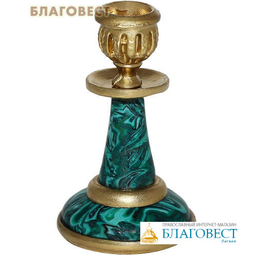 Подсвечник из металла с искусственным малахитом для свечи диаметром 1см