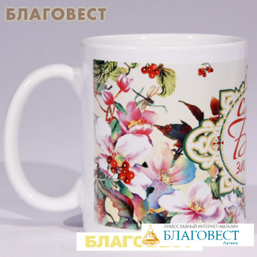 Кружка керамическая «Слава Богу за все!» подходит для ежедневного употребления. Сделана из керамики высокого качества. На белую кружку нанесено изображение цветов методом сублимации – метода нанесения прочных изображений. На кружку нанесены изображения цветов и ягод. В центре кружки помещен узорчатый круг с надписью «Слава Богу за все!» и двумя 4-хконечными Крестами.Объем кружки 300 мл. Каждая кружка поставляется в индивидуальной упаковке.