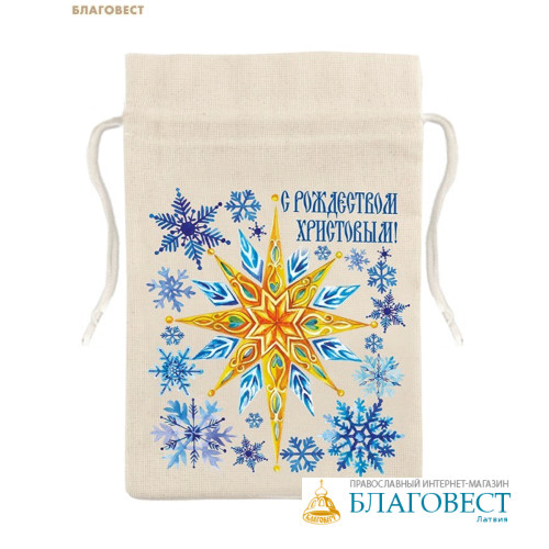 Мешочек подарочный С Рождеством Христовым!, размер 12х18см, холщовая ткань