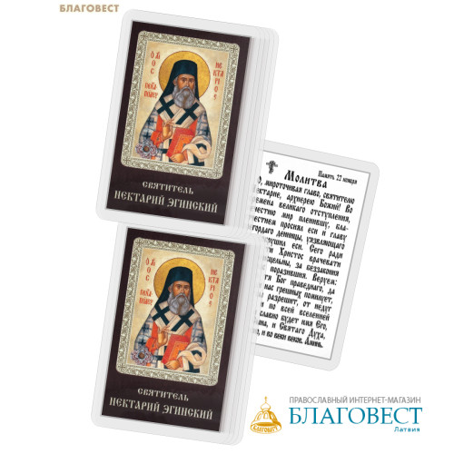 Икона Святитель Нектарий Эгинский ламинированная, с молитвой, размер 5,5х8,5см, (упаковка 10шт)