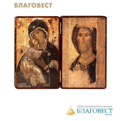 Складень двойной Пресвятая Богородица "Владимирская", Спас" (Рублев) на деревянной основе