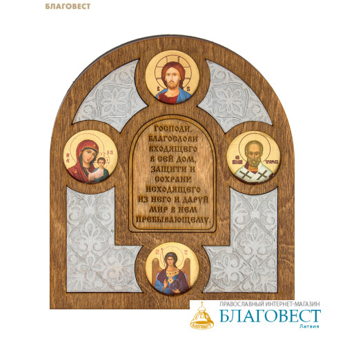 Икона арочная с молитвой о защите дома, размер 17,9х20см, дерево