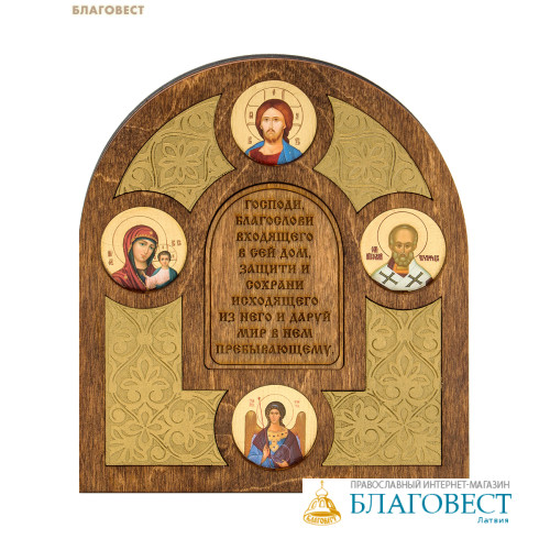 Икона арочная с молитвой о защите дома, размер 17,9х20см, дерево