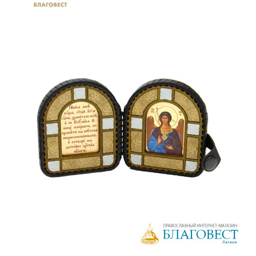 Складень кожаный Ангел Хранитель с молитвой, размер 7х8,5см (в раскрытом виде 14,3см), дерево