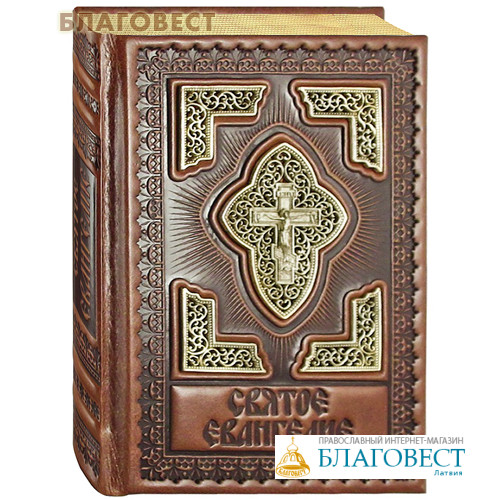 • Святое Евангелие. Кожаный переплет. Золотой обрез. Латунные вставки. Церковно-славянский шрифт
