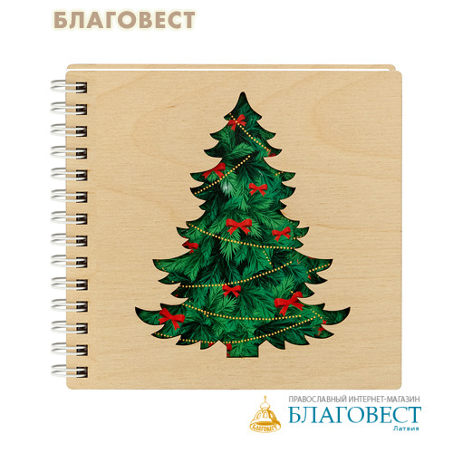 Блокнот деревянный "С Рождеством Христовым", 40 листов без разлиновки плотностью 80гр/м