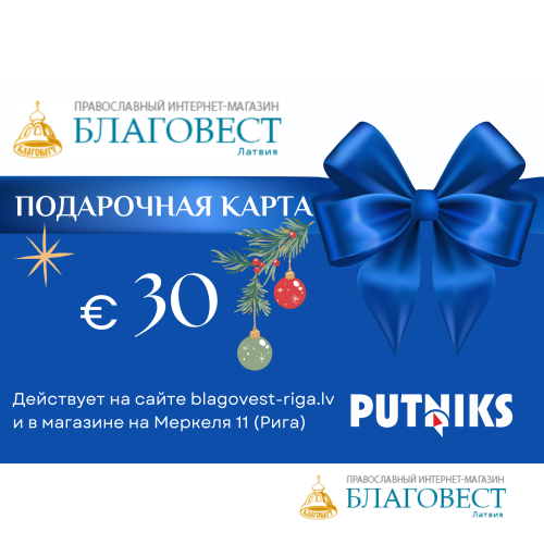 Подарочная карта на приобретение всех товаров в интернет-магазине blagovest-riga.lv и в магазине на Меркеля 11 (Рига).