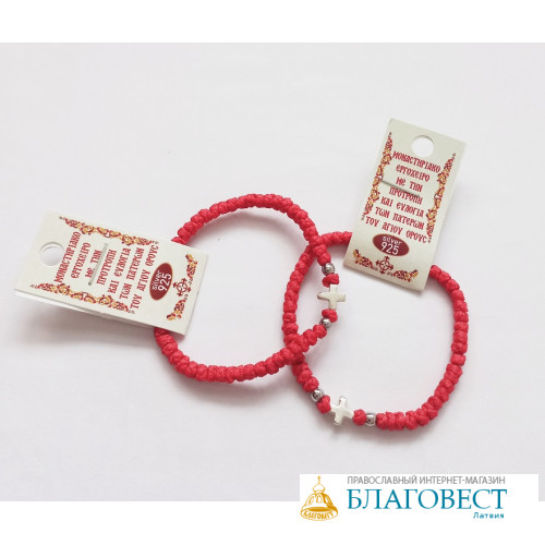 Браслет вязаный / комбоскини, с крестиком - серебро 925,