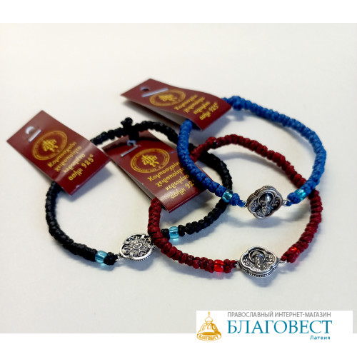 Браслет плетеный с серебряным образком Свт.Спиридона Тримифунтского, Corfu