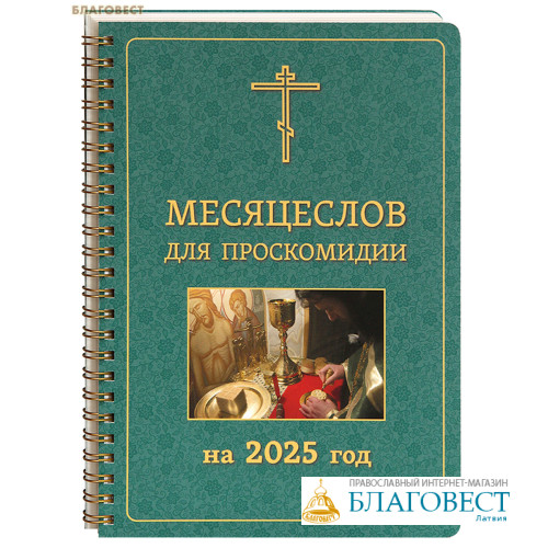 Месяцеслов Русской Православной Церкви, адаптированный для использования на проскомидии и также удобный для поминовения святых при произнесении отпустов.Не указываются апостольские и евангельские чтения, празднования в честь икон Божией Матери и другие события, не относящиеся к поминовению святых. Оставлены только названия праздников, недель, седмиц, дней для удобной ориентации в календарной сетке.Фамилии новомучеников и исповедников Церкви Русской, указания века или года кончины святого, а также информация о переходящих празднованиях даны приглушенным цветом уменьшенным кеглем, чтобы глаз в первую очередь «выхватывал» из текста именования святых.Над сложными и непривычными именами проставлены ударения.Подавляющее большинство дней расположено в пределах страницы или разворота. Если список святых дня не умещается на одной странице и продолжается на следующей, то в конце текущей страницы поставлена заметная стрелка зеленого цвета.