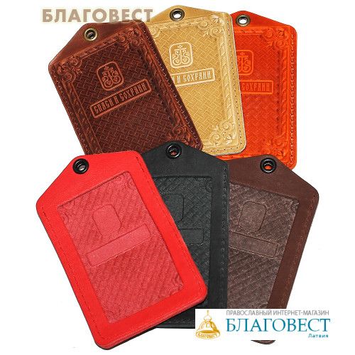 Обложка для социальной карты со шнурком (натуральная кожа). Цвет коньяк