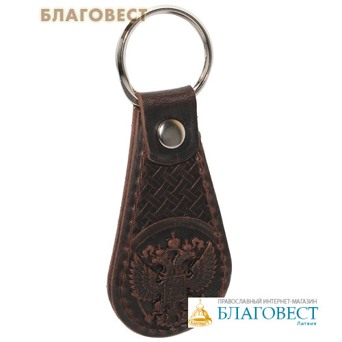 Брелок для ключей 2-слойный, прошитый. Цвет темно-коричневый. Изготовлен из натуральной кожи с тиснением Креста и герба России. Удобный, красивый, недорогой подарок для близкого человека.