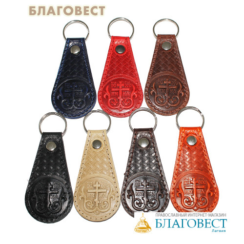 Брелок для ключей 2-слойный, прошитый. Цвет красный. Изготовлен из натуральной кожи с тиснением Креста и герба России. Удобный, красивый, недорогой подарок для близкого человека.