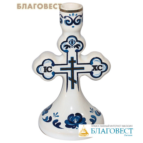 Подсвечник керамический выполнен в форме креста с круглым устойчивым основанием. Такой подсвечник может стать прекрасным пасхальным подарком. Сделано в России.