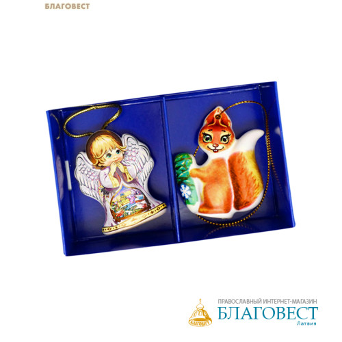 • Набор из 2-х елочных игрушек Ангел и Белочка, высота 6см, керамика