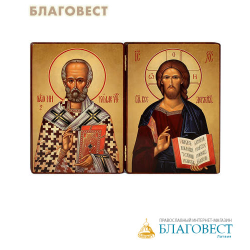 Складень двойной "Свт. Николай Чудотворец, Г-дь Вседержитель" на деревянной основе