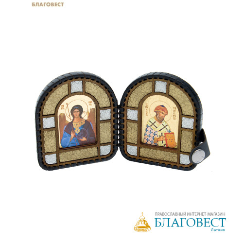 Складень кожаный Ангел Хранитель - Спиридон Тримифунтский, размер 7х8,5см (в раскрытом виде 14,3см), дерево