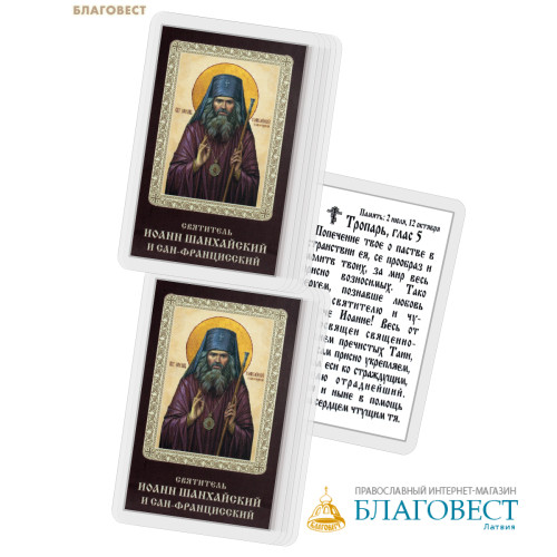 Икона Святитель Иоанн Шанхайский и Сан-Францисский ламинированная, с молитвой, размер 5,5х8,5см, (упаковка 10шт)