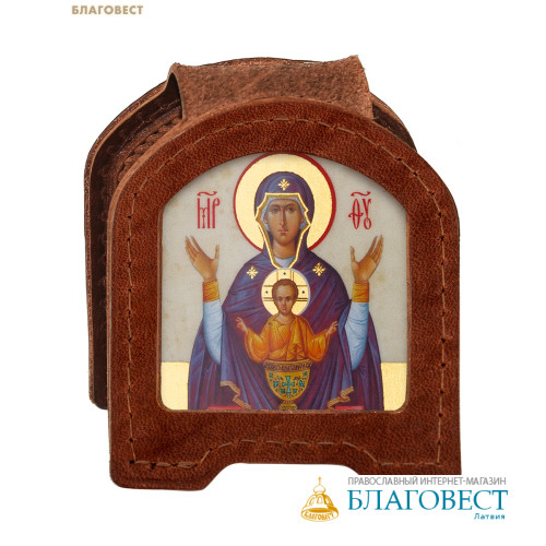 • Икона дорожная раскладная Пресвятая Богородица «Неупиваемая чаша» (натуральная кожа). Цвет коньяк
