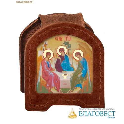 • Икона дорожная раскладная Святая Троица (натуральная кожа). Цвет коньяк
