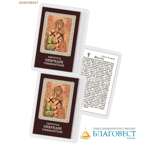 Икона Святитель Спиридон Тримифунтский ламинированная, с молитвой, размер 5,5х8,5см, (упаковка 10шт)
