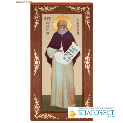 Икона ростовая Преподобный Серафим Саровский, дерево, полиграфия, размер 13х25см