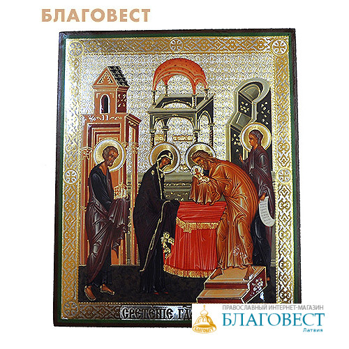 Празднование Сретения Господня Церковь чествует 2 (15) февраля - на сороковой день от Рождества Христова. В этот день вспоминается принесение младенца Христа в Иерусалимский храм. Иконографически изображен ключевой момент события – передача Богомладенца Симеону-богоприимцу. Богословское значение праздника заключается во встрече Ветхого и Нового Завета.По иудейской традиции женщина после родов должна была принести жертву в свое очищение, поэтому на иконе изображен Иосиф Обручник с жертвенными голубями. Свидетелем события была пророчица Анна.По преданию Симеон был одним из 70 толковников (переводчиков) Евангелия, которые работали над Септуагинтой - переводом еврейских оригиналов книг канона Ветхого Завета на греческий язык. Работая над текстом книги пророка Исайи, Симеон задумался о том месте в тексте, где было написано «Се Дева во чреве приимет и родит Сына» и пришел к выводу, что в данном контексте гораздо уместнее было бы слово «жена». И уже приготовился писать, как внезапно появился Ангел Господень, возвестивший, что не умрет благочестивый муж, пока не убедится в истинности слов Писания.Около трехсот лет жил почтенный старец в предвкушении встречи. И словами его в момент когда воспринял Богомладенца из рук Пречистой Девы было воззвание ко Господу «ныне отпущаеши раба Твоего, Владыко, по глаголу Твоему с миром», после чего благословил Марию и Иосифа-обручника, бывшего с ней.