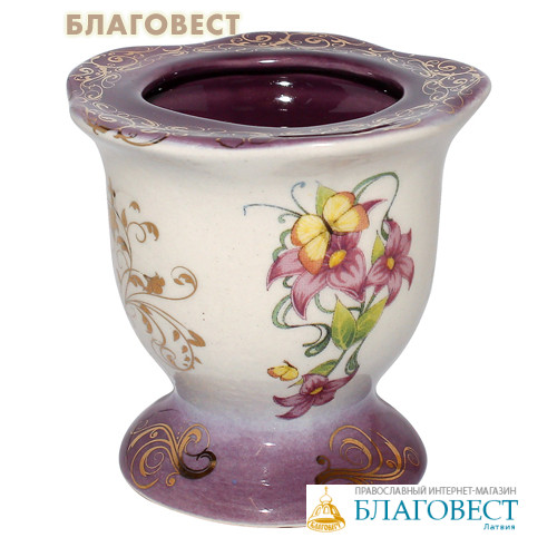 Лампада выполнена из фарфора. Деколь. Сделано в России.Фарфор - благороднейший и наиболее совершенный вид керамики. Фарфоровую смесь тщательно вымешивают, процеживают и отливают в специальные формы. Отформованные предметы трижды обжигают: сначала до температуры 700-800 градусов, затем покрывают глазурью и обжигают до 1200-1350 градусов, после изделия расписывают и снова отправляют в печь, чтобы роспись была яркой и стойкой.Недаром фарфор величают «белым золотом». Его издревле изготавливают по всему миру. Само слово «фарфор» созвучно со словом Фавор. «Гора Фавор, земное небо, отрада души и услаждение глаз православных людей. Ибо этой горе присуща преосеняющая ее некая божественная благодать, оттого она и возбуждает духовную радость» - сказал свт. Григорий Палама. Так и изделия из фарфора изготавливаются не только для пользы, но для души, чтобы радовать глаз и греть душу.