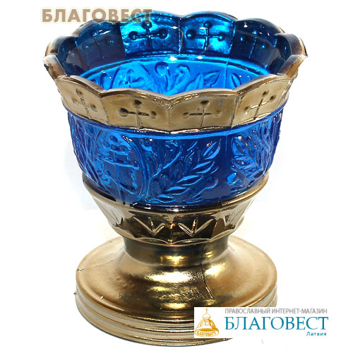 Лампада "Лилия" синяя с золотом, узорчатая на ножке