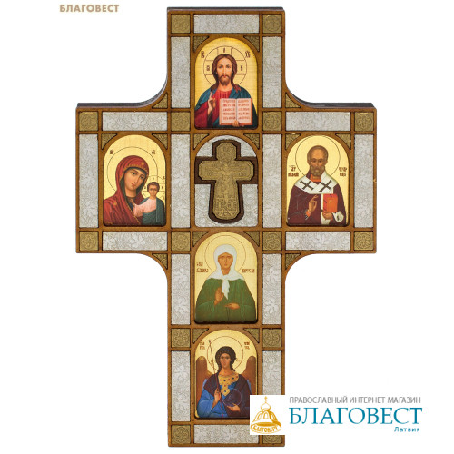 Крест настенный с иконами, размер 23,2х15,9см, дерево