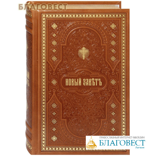 Подарочное репринтное издание в кожаном переплёте, воспроизводящее «Новый Завет Господа нашего Иисуса Христа», выпущенный Синодальной типографией в 1886 г. Книга среднего формата в кожаном переплете ручной работы с блинтовым тиснением и с тиснением золотой фольгой. Текст отпечатан церковно-славянским шрифтом и разделен на зачала. Использована офсетная бумага, позолоченный обрез блока. Форзац выполнен из дизайнерской бумаги. Для удобства издание снабжено ленточкой-закладкой.