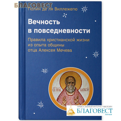 Святого праведного Алексея Мечева называют старцем в миру. Он подчеркивал особую ценность духовного пути мирян, учил, что призвание к ежедневному служению друг другу в профессии и в семье ничуть не уступает по своей значимости пути монашескому.Исследователь истории русской Церкви Полин де ля Виллежегю в своей книге «Вечность в повседневности» рассказывает об основанной святым знаменитой маросейской общине, ее устройстве, правилах жизни и особой благодатной атмосфере.